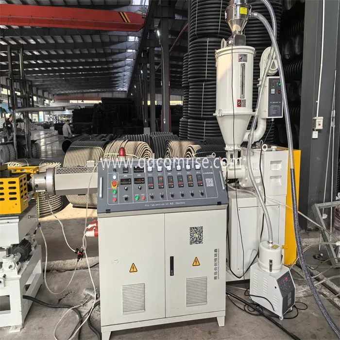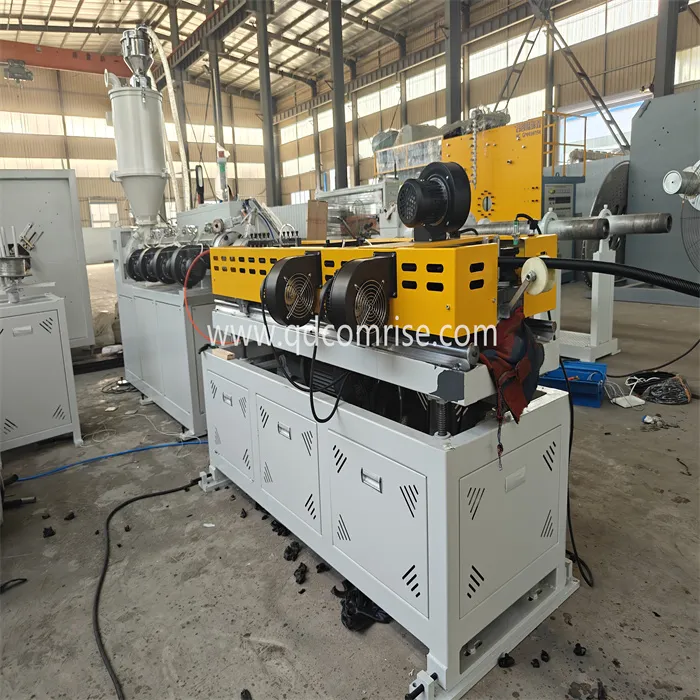 Труба потрапляє в горогатор, де він формується в гофрований профіль, використовуючи цвілі та вакуумний тиск.