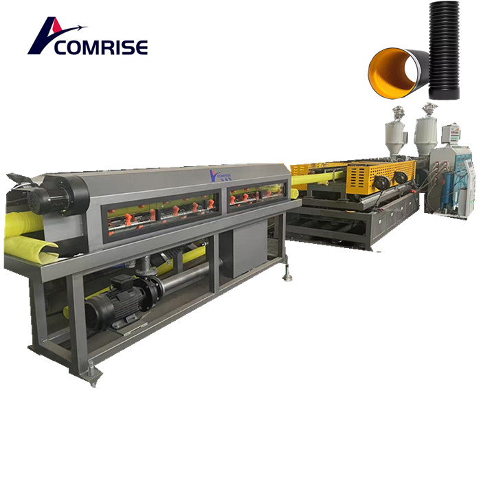 Машина для гофрованої труби з подвійною стінкою приймає процес екструдування та формування, вона має функції надійної якості та високої ефективності, що має іншу структуру пластикової труби, подвійна стінова гофрована труба має відмінну конструкцію структури стін, її низька вага досягає нижчих виробничих витрат та покращує конкурентоспроможність ринку. Труба широко використовується в різних полях замість бетонних труб та залізних труб, оскільки вона має відмінні функції, такі як легка підключена та доступ до встановки.