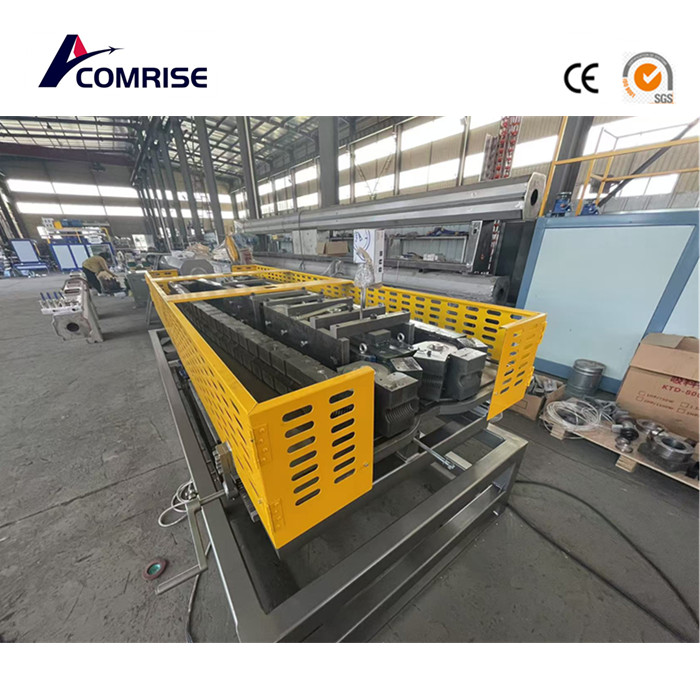 Вакуумна машина з водяним охолодженням робить вироблені гофровані труби більш гладкими та естетично приємними. Ми пропонуємо 52 пари модулів у формі блоку з нітридуючими та полірувальними процедурами, щоб зробити їх міцними. Якщо зараз придбано, для кожного набору форм різного розміру будуть надані 2 пари запасних форм.
