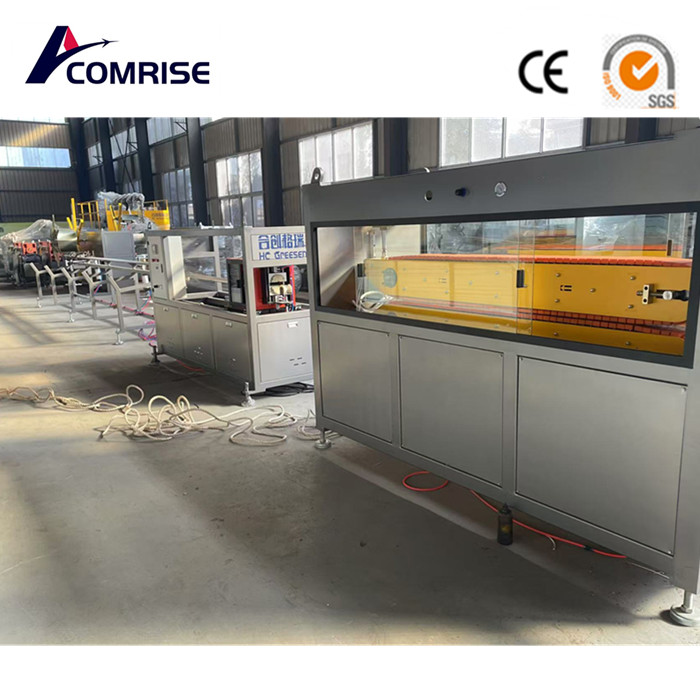 Одиночний гвинтовий екструдер → кольорова струна та багатошаровий екструдер Co → цвіл → вакуумний калібрувальний резервуар → розпилення охолодження водного резервуару → перевезення → без видалення пилу → стакер → кінцевий огляд та упаковка продукту та упаковка