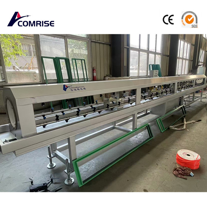 Jwell проектує високопродуктивний та калібрувальний танк для клієнтів. Цей калібрувальний резервуар становить 9 метрів, щоб переконатися, що труби можуть бути достатньою охолодженням та калібруванням. Він також може бути оснащений частотним інвертором для економії енергії та низького шуму під час роботи насоса. Для екструзійної лінії великого діаметру (630 і вгору) калібрувальний резервуар буде розроблений як дві частини, щоб переконатися, що він має кращий ефект калібрування.