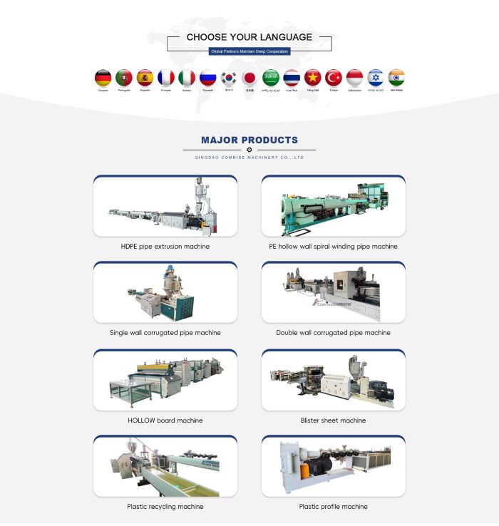 У нас також є багато продуктів, таких як лінія виробництва PE, виробнича лінія PVC, лінія виробництва профілів, лінія виробництва грануляції, лінія виробництва листів тощо. Ви можете вибрати різні продукти.